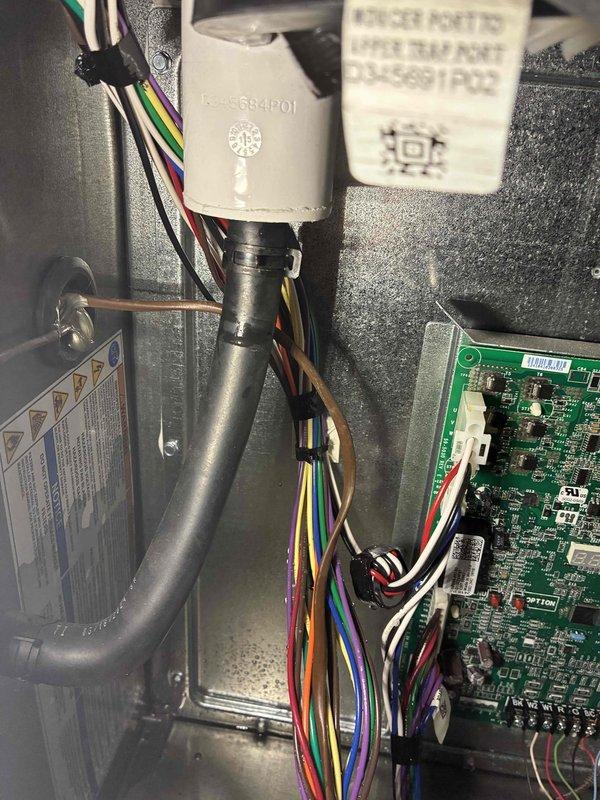 Responded to customer callback for water accumulation beneath furnace following previous service visit. Inspected internal components and wiring harness for potential condensate leak source. Identified and resolved drainage issue affecting the condensate removal system.