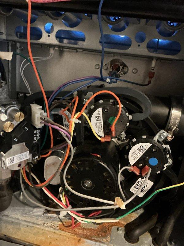 Completed comprehensive heating maintenance on residential HVAC system. Performed thorough inspection of blower motor assembly, verifying proper operation and examining electrical connections including control module wiring and terminal connections. Documented condition of blower wheel showing dust accumulation on fan blades and housing, which is normal for seasonal operation. All components functioning within normal parameters at time of service.