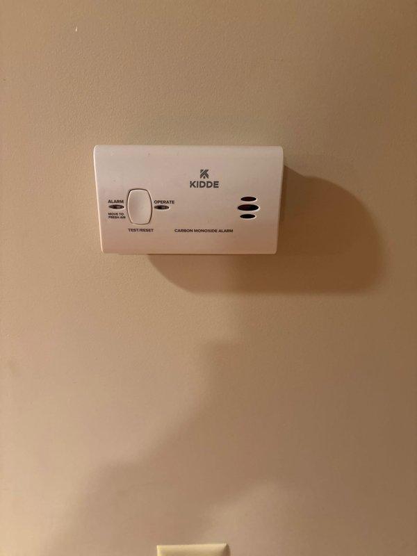 Performed warranty service for filter installation (813). Installed and verified proper operation of Kidde carbon monoxide alarm on wall as part of safety compliance requirements. Documented installation with photographic evidence.