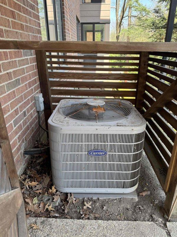 Conducted comprehensive site evaluation for full HVAC system replacement at residential property. Assessed existing outdoor unit location, electrical disconnect infrastructure, and installation area including metal grating platform and brick foundation mounting points. Documented current equipment configuration and prepared detailed replacement options for complete heating and cooling system upgrade.