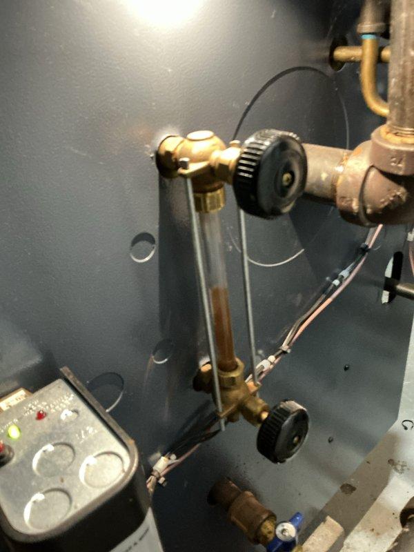 Completed scheduled HVAC heating maintenance on boiler system, performing comprehensive inspection of all components including piping, connections, and control systems. Documented system condition with diagnostic measurements using clamp meter, inspected sight glass showing sediment accumulation, and examined copper piping exhibiting corrosion and mineral deposits requiring monitoring. Verified all PVC piping, ball valves, and connections for proper operation and confirmed system functionality upon completion.