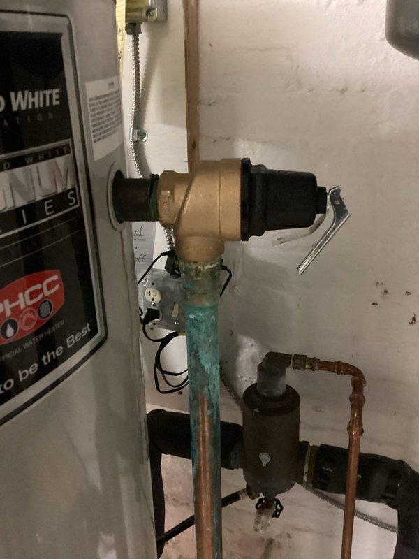 Replaced failed relief valve on glycol storage tank system. Corrective maintenance addressed heavily oxidized copper piping and compromised pressure safety component. New valve properly installed to restore system integrity and safety functionality.
